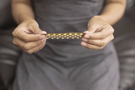 Woman holding combined oral contraceptive pill.Gynecology concept.