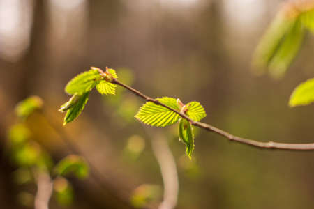 Fresh new hazel green leaves and blurred background