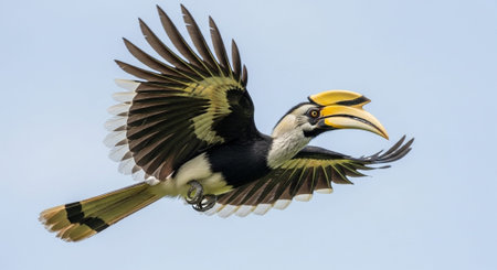 A Great Hornbill, also known as the great Indian hornbill or great pied hornbill, is one of the larger members of the hornbill family. Generative Ai