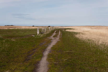 Winding dirt road along the coast at the swedish island Oland in the Baltic Sea