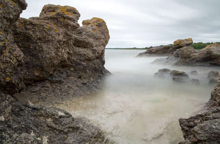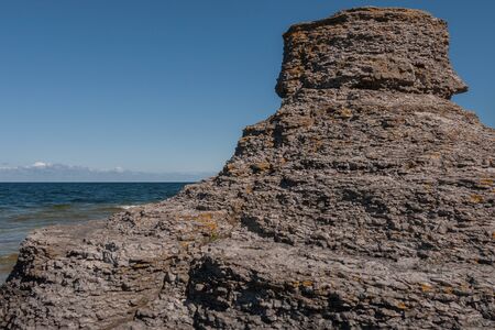 Coastal limestone formations, raukar, at Byrum at the swedish island Oland, the island of sun and wind in the Baltic Sea