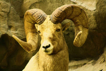 mountain RAM with horns, brown in the Park area, close portrait