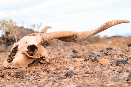 Dry Goat Skull on the Rock Desert Canary Islands Spain