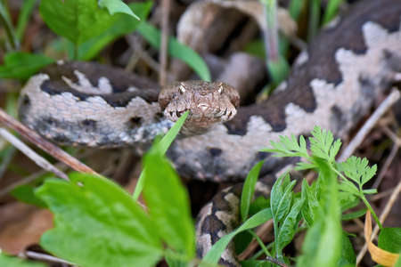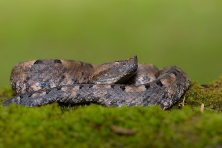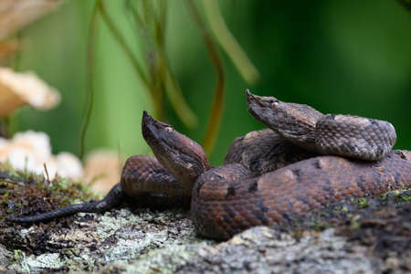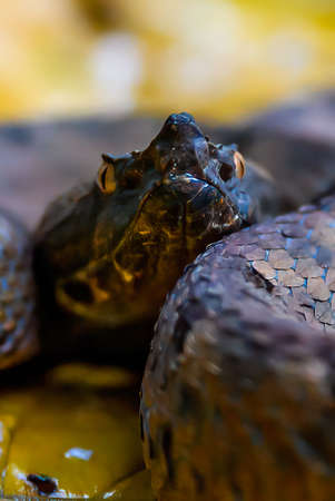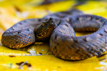 Painted Lancehead snake, or Bothrops diporus. Close up view.