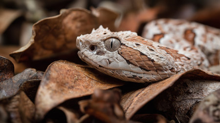 A lizard blends perfectly with dry leaves, showcasing its remarkable camouflage skills in nature