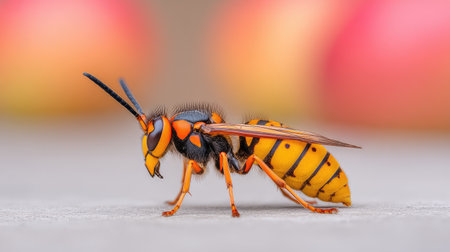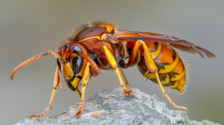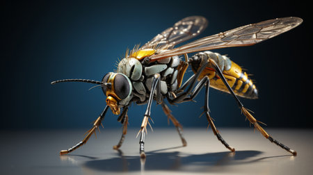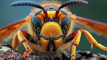 A hyper-realistic photo of a wasp with extremely fine details, generated by AI. High quality photo
