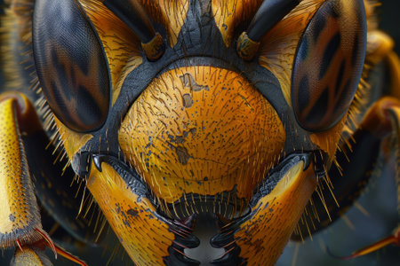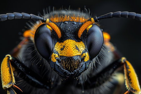 Ultra-detailed macro capture of a European wasp, showcasing its intricate patterns and features.
