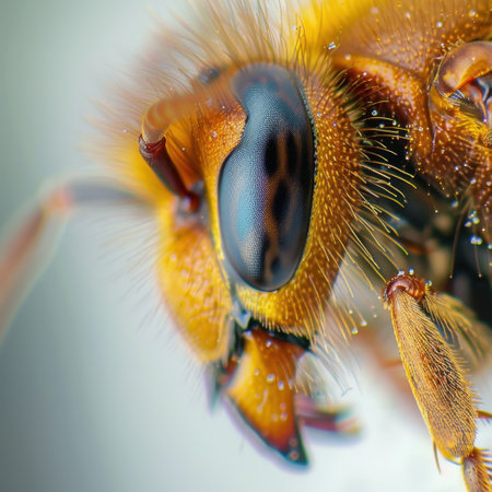 Close up of bumblebee s compound eye, showcasing intricate facets and hexagonal arrangement