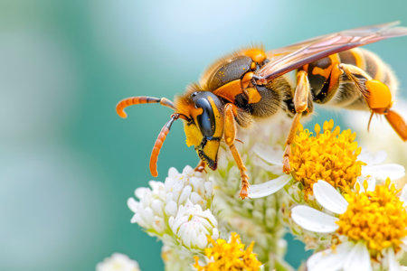 Hornet sitting on a flower and looking at you