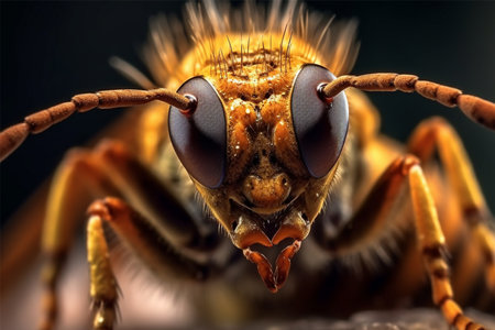 Extreme closeup of a bee on a dark background. 3d rendering