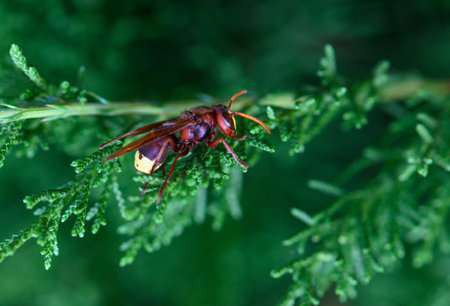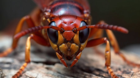 Close-up of a red Oriental hornet (Vespa orientalis)