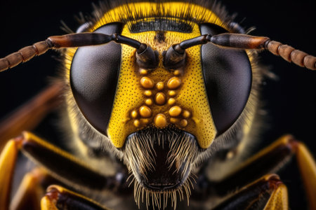 A close up of a wasp with yellow and black stripes, AI