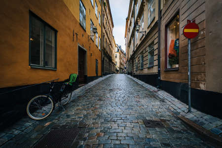 A narrow street in Galma Stan, Stockholm, Sweden.