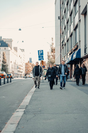 Oslo, Norway. September 2021. view of people strolling in the Karl Johans gate in the city center