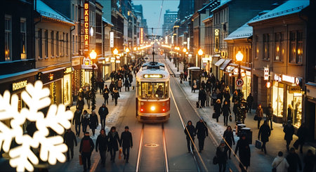 Streets of Tampere, Pirkanmaa, western part of Finland, vibrant winter city view, with town hall, church, and the cathedral