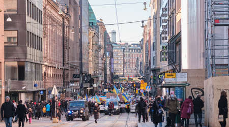 Helsinki, Finland - February 26, 2022: Demonstration against the Russian aggression in Ukraine