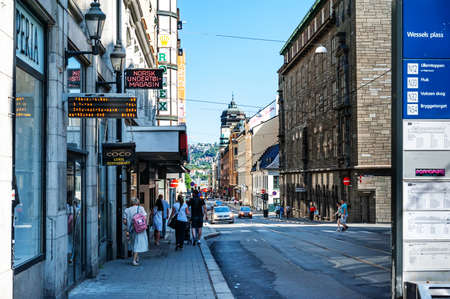 July 26, 2013. View of the streets of Oslo, Norway. The area of the Central station in Oslo. Tourists walk along the Central streets of the city. Editorial.