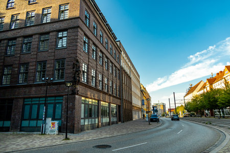 MALMO, SWEDEN, APRIL 24, 2019: Sunset view of a street in center of Malmo, Sweden