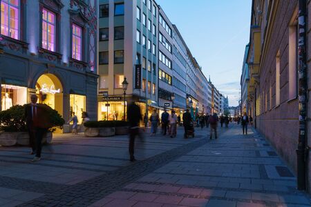 Munich, Germany - October 20, 2017: Evening life of the pedestrian center of the old town near Marienplatz