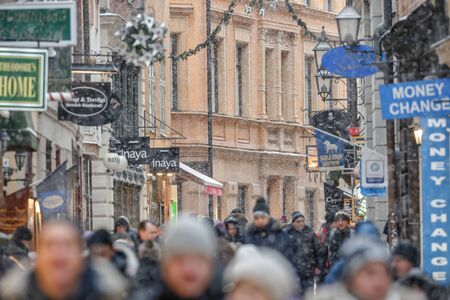 STOCKHOLM, SWEDEN - JAN 8, 2015: Vasterlanggatan in the Old town with people during the winter holidays.