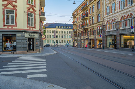 Oslo, Norway - June 23, 2019: Houses On Cort Adelers gate street In Summer evening.