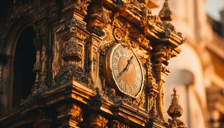 Clock tower symbolizes ancient spirituality and history generated by artificial intelligence