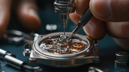 A close-up of a master watchmaker repairing a luxury watch with precision tools