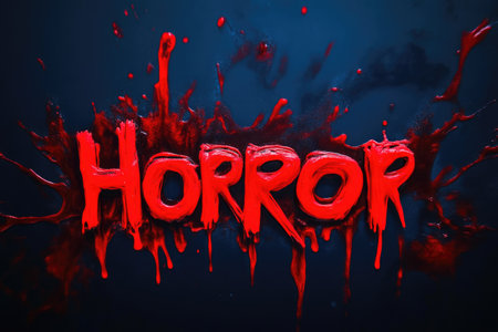 Horror scene of a man in a dark room with blood and smoke.