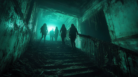Ghostly horror background with dark atmosphere, shadowy phantom figure and chilling spooky mood, ideal for Halloween and scary design projects