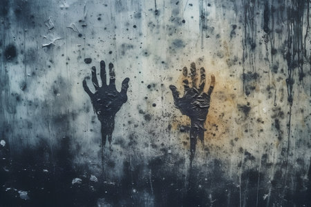 Hand of woman ghost creepy touch on wall have copy space for background, halloween day concept