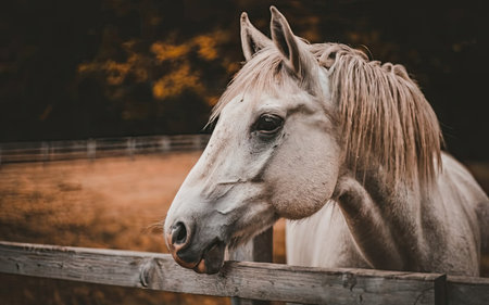 Portrait of beautiful white horse on ranch