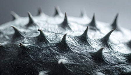 Soursop skin macro with soft speculars revealing the thorn pattern on cool charcoal refined tropical surface study for editorial and sleek branding