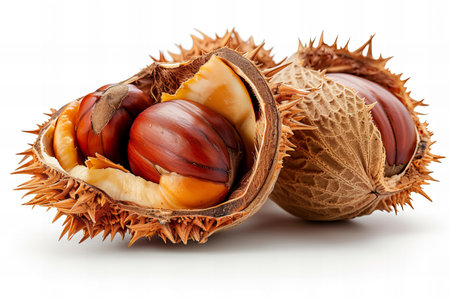 Fresh and ripe chestnuts, close up, Autumn chestnuts