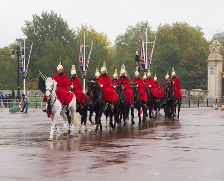 LONDON, ENGLAND - OCTOBER 21: Horse parade arrives at Buckingham palace, the London residence and administrative headquarters of the reigning monarch of the United Kingdom