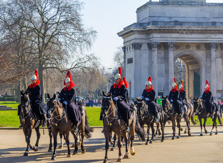 LONDON, UK - 9TH MARCH 2014 Horse Guards in London near Hyde Park Corner