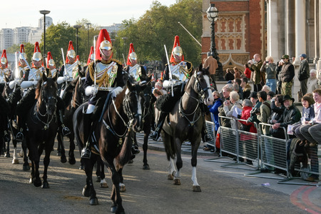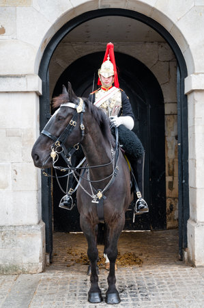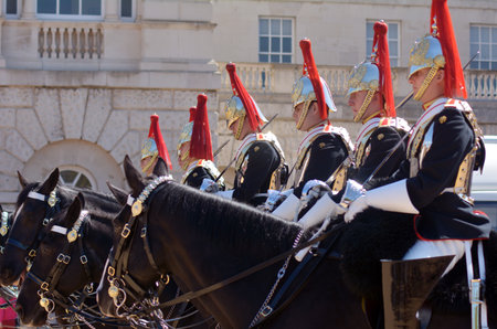 London, United Kingdom - October 2, 2013: The Queen's Life Guard or Horse Guard participate on in the changing ceremony in London