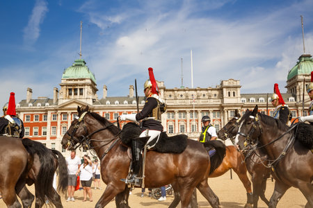 LONDON, UNITED KINGDOM - JUNE 14, 2016: Royal Guards parade at the Admiralty House in London, England, United Kingdom on June 14, 2016