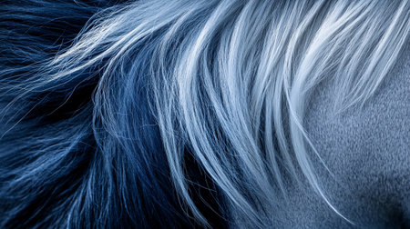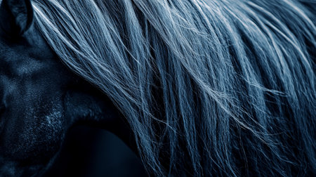 Closeup of horse hair on mane in black and white for rural ranch equine concept.