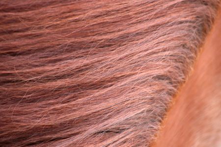 The wavy, thick red mane of the horse. Beautiful wavy hair.