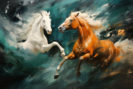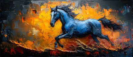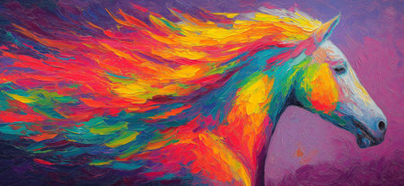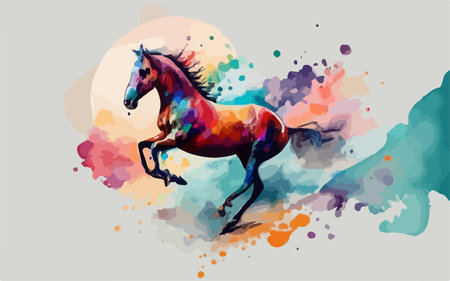 Abstract horse painting showcasing energetic movement and a spectrum of vibrant colors. Vibrant abstract horse galloping with colorful movement