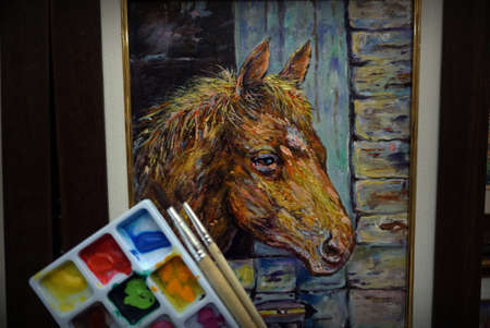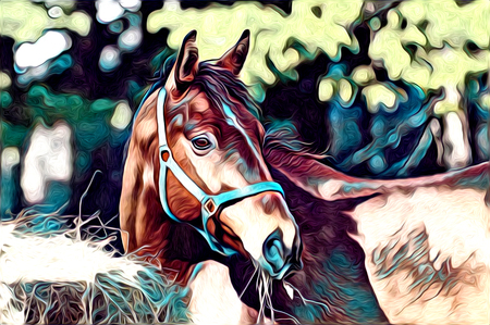 Oil painting. Horse on pasture.