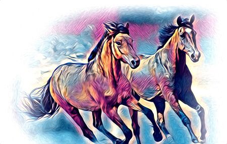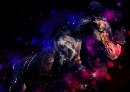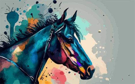 Colorful horse art illustration grunge painting