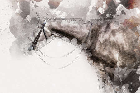 Horse portrait. Watercolor painting on canvas. Vector illustration.