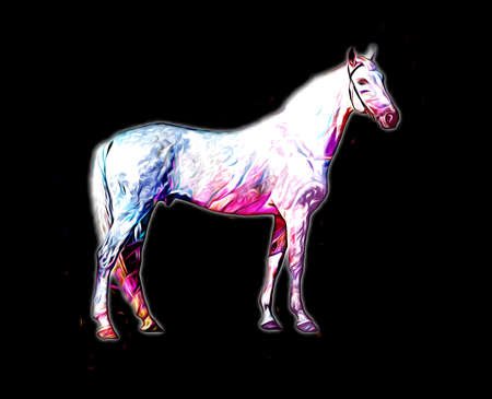 A digital painting of a horse, rendered in vibrant, flowing colors against a dark backdrop. The style is surreal and abstract.