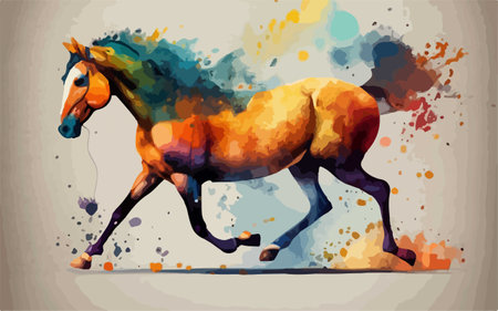 Horse running in watercolor paint splashes. Vector illustration.