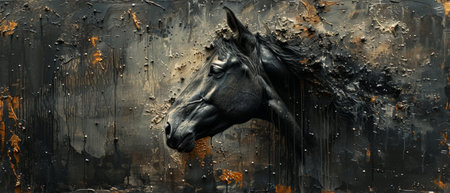 Abstract painting, metal elements, texture background, horses, animals, etc.