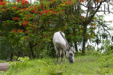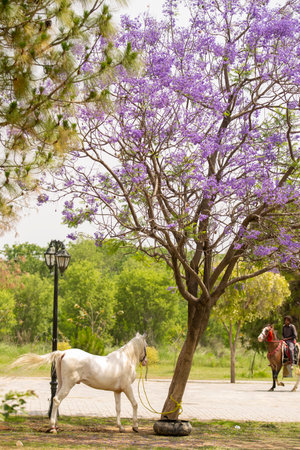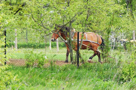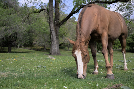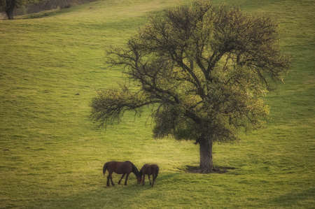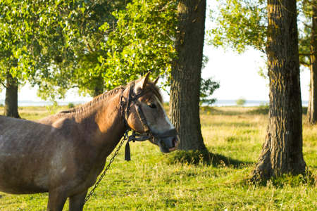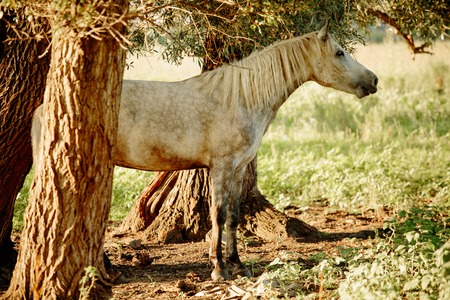 Horse on the meadow under the tree, taken in the Belgrade's park named Kosutnjak