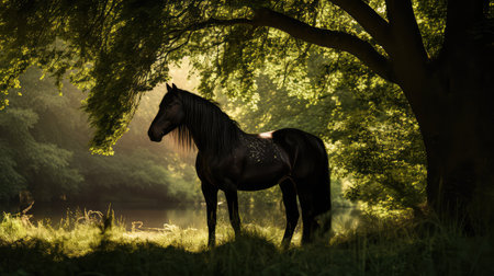 portrait of a black Arabian Stallion horse, generated with AI. High-quality photo