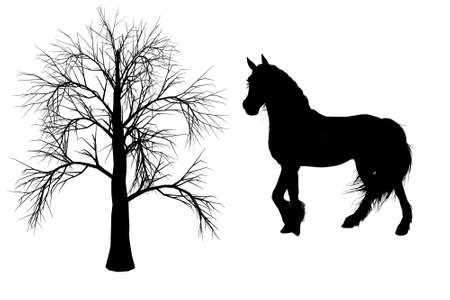 Silhouette of deer and tree in winter landscape. 3D rendering