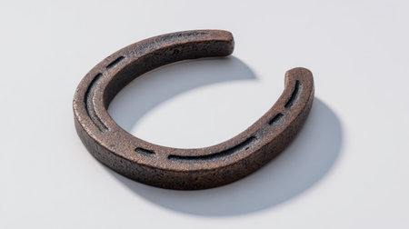 This image features a plain metallic horseshoe, showcasing its smooth surface and symmetrical design against a clean background. Perfect for illustrating luck and tradition.
